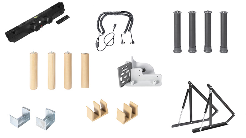 Unire due reti singole, aggiornare una rete motorizzata applicando un telecomando wireless, evitare lo scivolamento laterale del materasso, sono solo alcune delle situazioni risolvibili attraverso la nostra gamma di accessori.